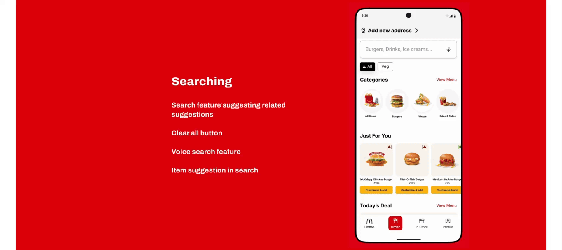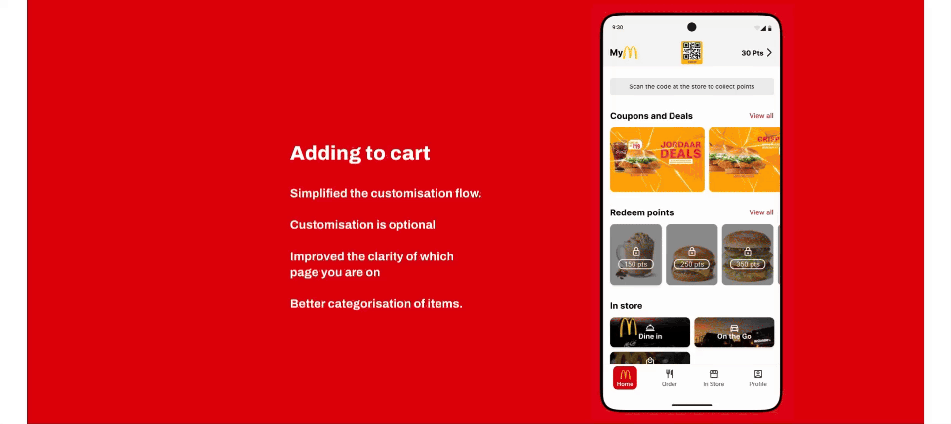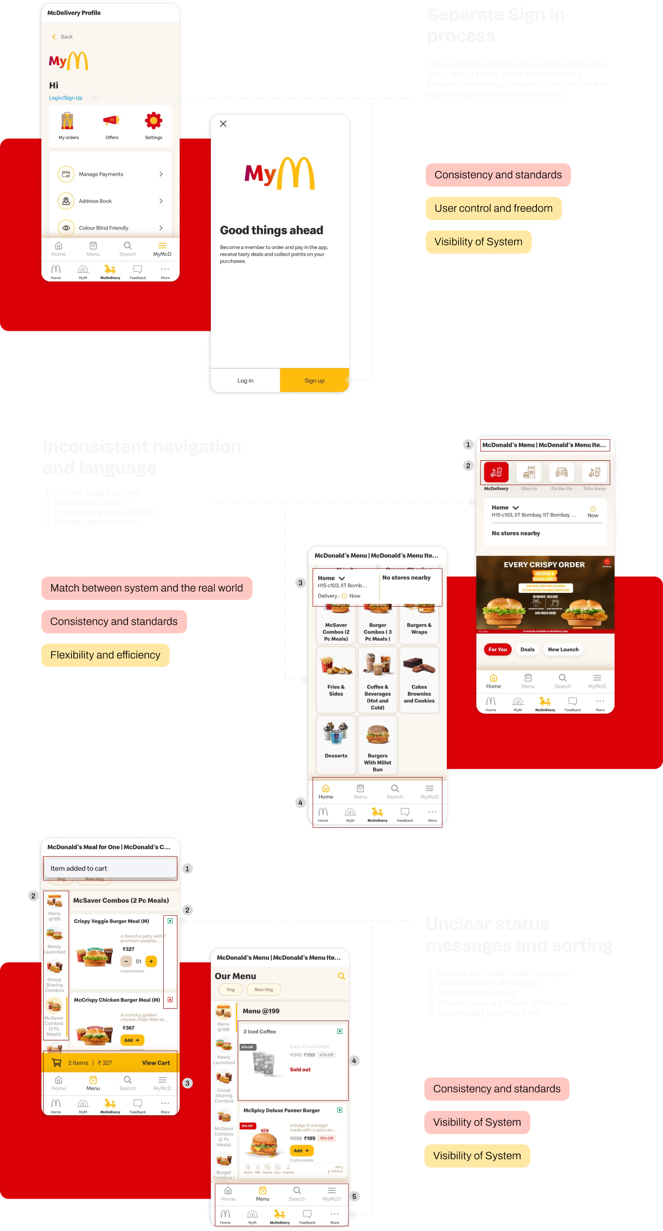 The McDonald’s app for South and East India is the version we took to evaluate and redesign. This is an app that is a mix and match of several features put together from different versions from other regions.