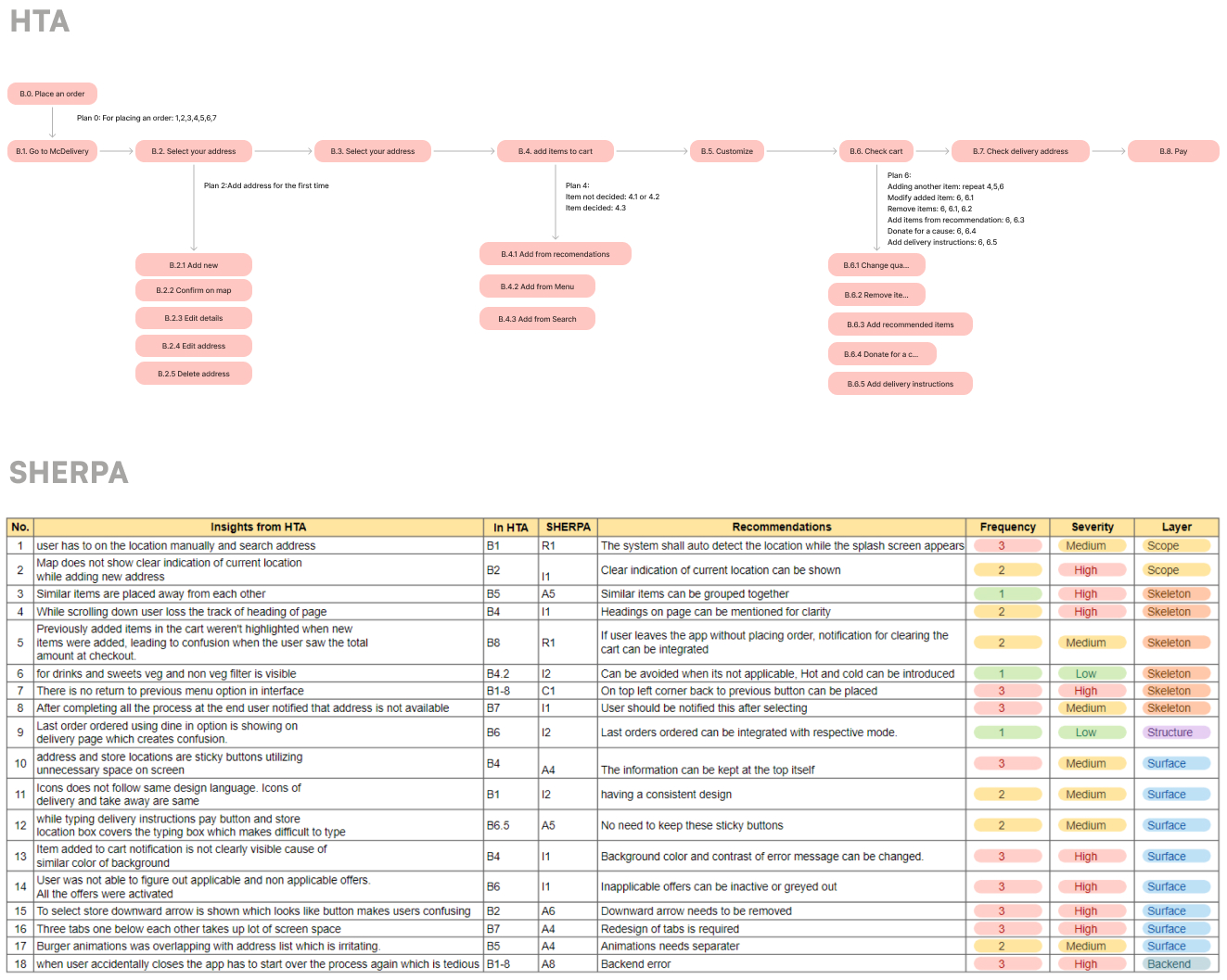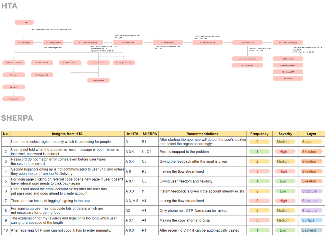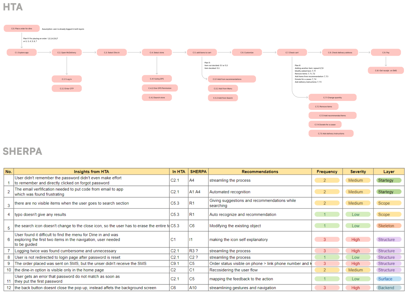 The main evaluation methods we use here are HTA (Hierarchal Task Analysis), S.H.E.R.P.A, Heuristic analysis, Usability Matrix and H.E.A.R.T.