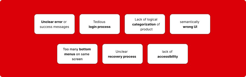 We looked at the errors and redesigned different parts and flows of the app to either remove or minimise the issues.