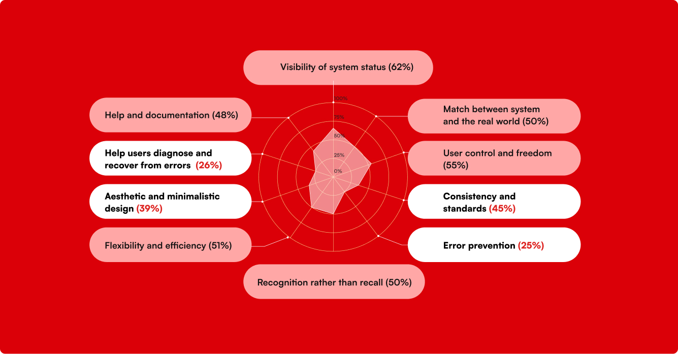 Jakob Nielsen’s 10 usability heuristics are used for assessing usability.