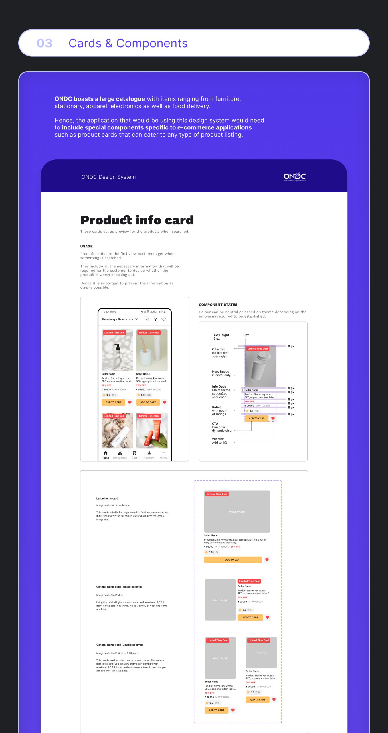 - Cards & Components: Custom card structures tailored for e-commerce use cases such as food delivery, fashion, or furniture, aligned with the ONDC ecosystem.
