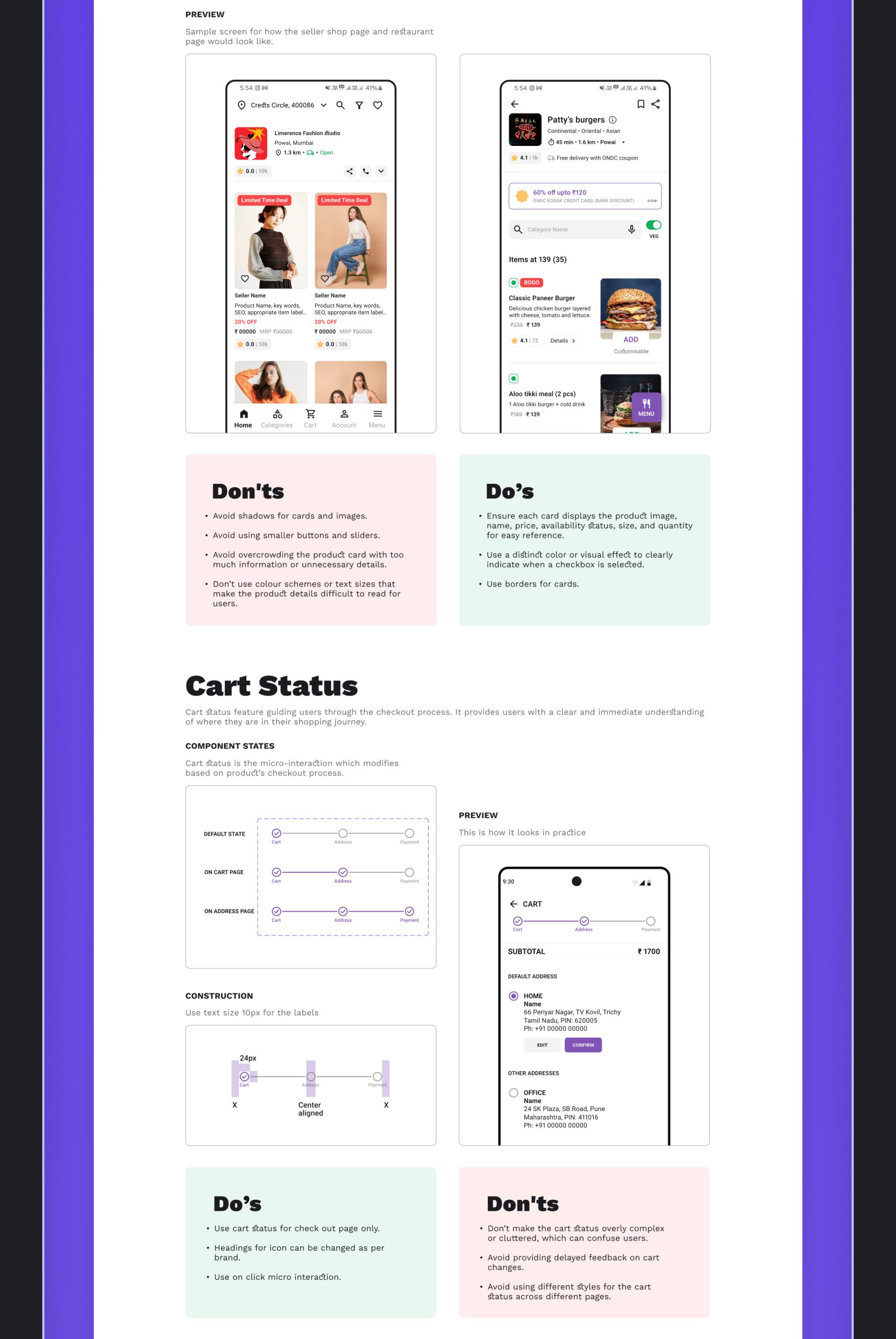 The ONDC-specific design system simplified the design-to-development handoff and reduced interface inconsistencies across partner platforms. Developers reported faster implementation and fewer design clarifications needed during integration. By prioritizing clarity, structure, and accessibility, the system ensures that even without deep design expertise, teams can produce consistent, high-quality digital experiences that align with ONDC’s visual and functional identity.