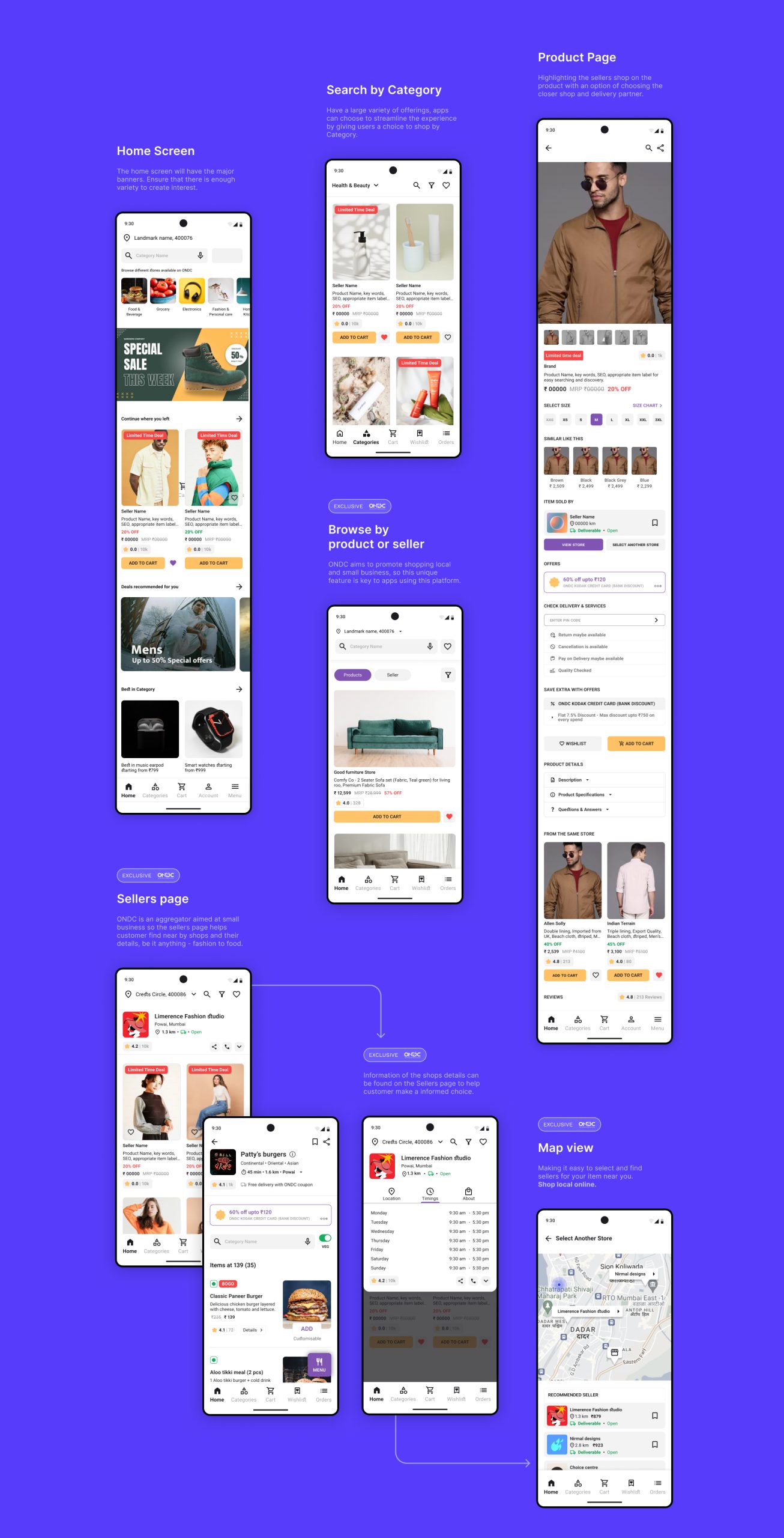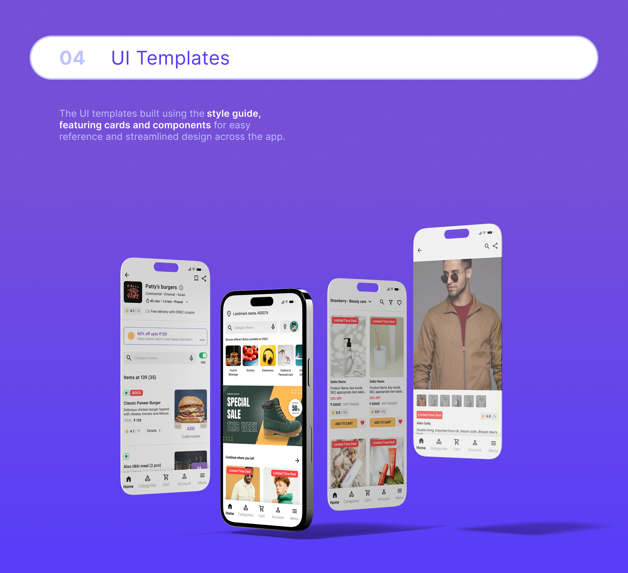 - UI Templates: Predefined screen templates to maintain quality and uniformity across multiple platforms built for ONDC.